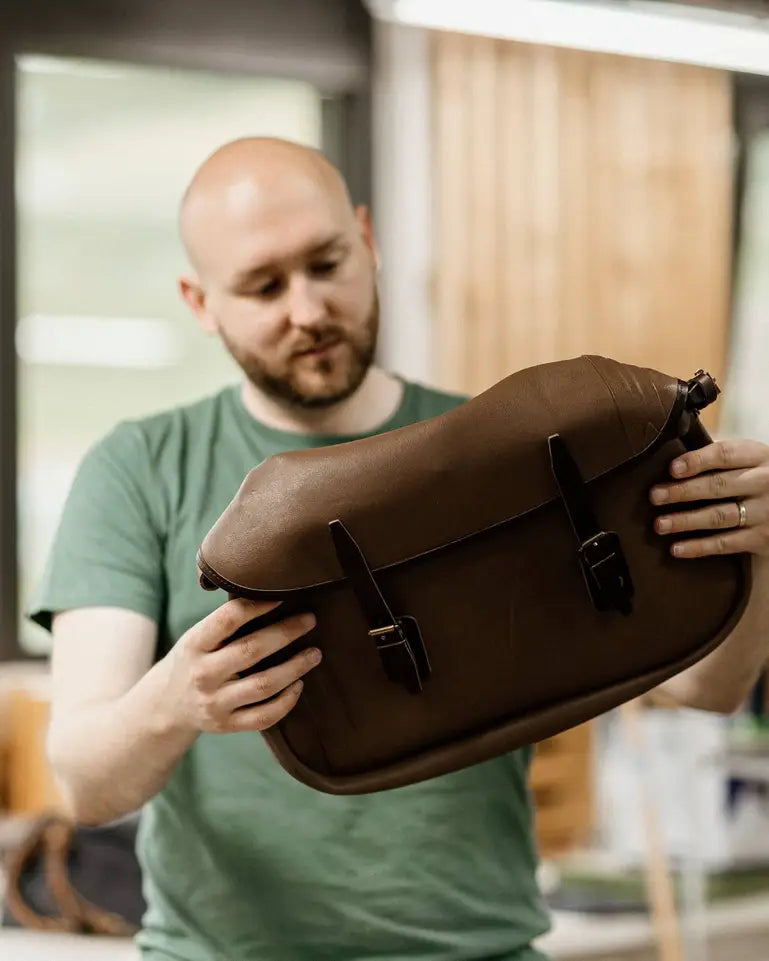 Outdoor spirit, timeless design, artisanal details, and urban style come together in this new fisherman's Musette. Available in 2 sizes, a compact 3L and spacious 7L. Each bag features an adjustable cotton strap, so it can be carried over the shoulder or across the chest. It has a patch pocket on the back with a magnetic clasp and a cotton pocket on the inside. Each bag features multiple pockets has room for all your day-to-day necessities.