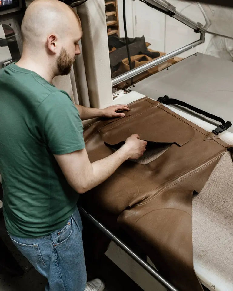 Our purpose: to give new meaning, and the chance to create new stories by taking an imaginative approach to upcycling Waders, worn by oyster farmers. Waders that have been handcrafted by Le Chameau, for close to a hundred years.
