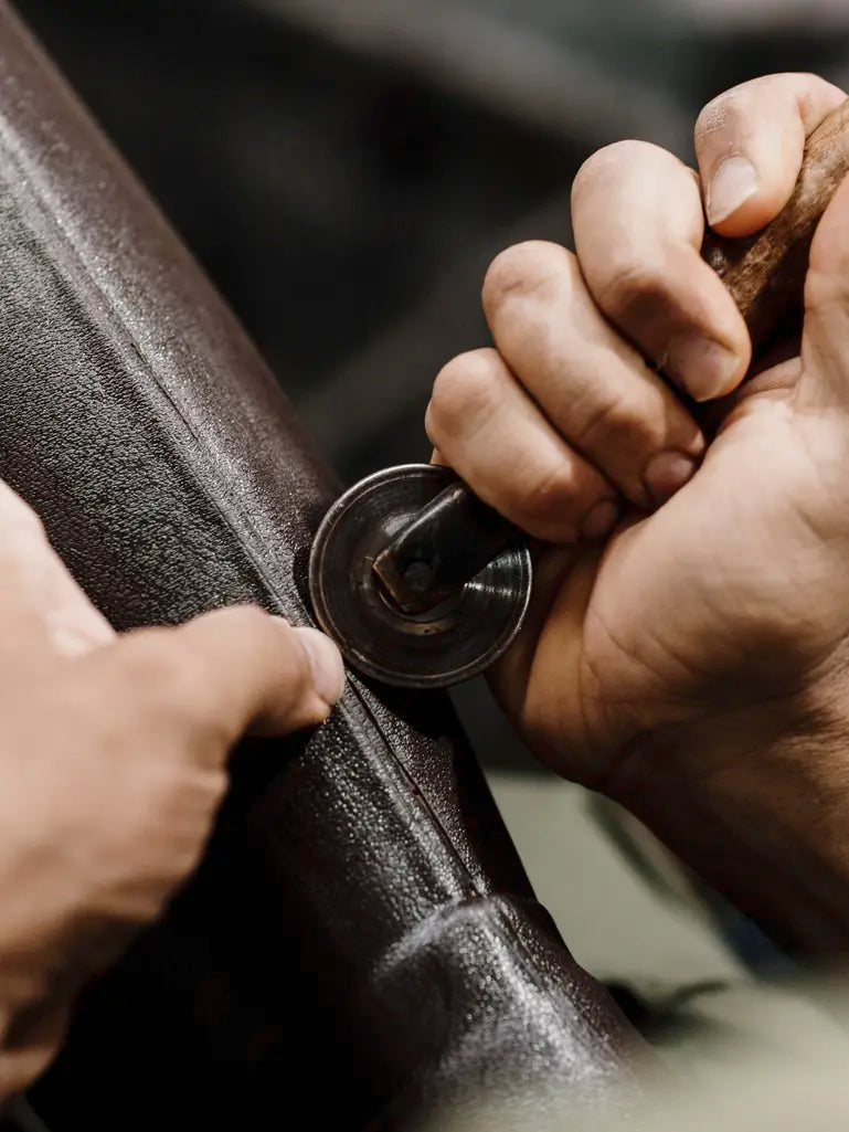 Once every element has been gathered – the individual rubber pieces have been hand-cut and trimmed, the sole moulded, and the linings cut and made ready – the Maître bottier is ready to carefully assemble the boot.