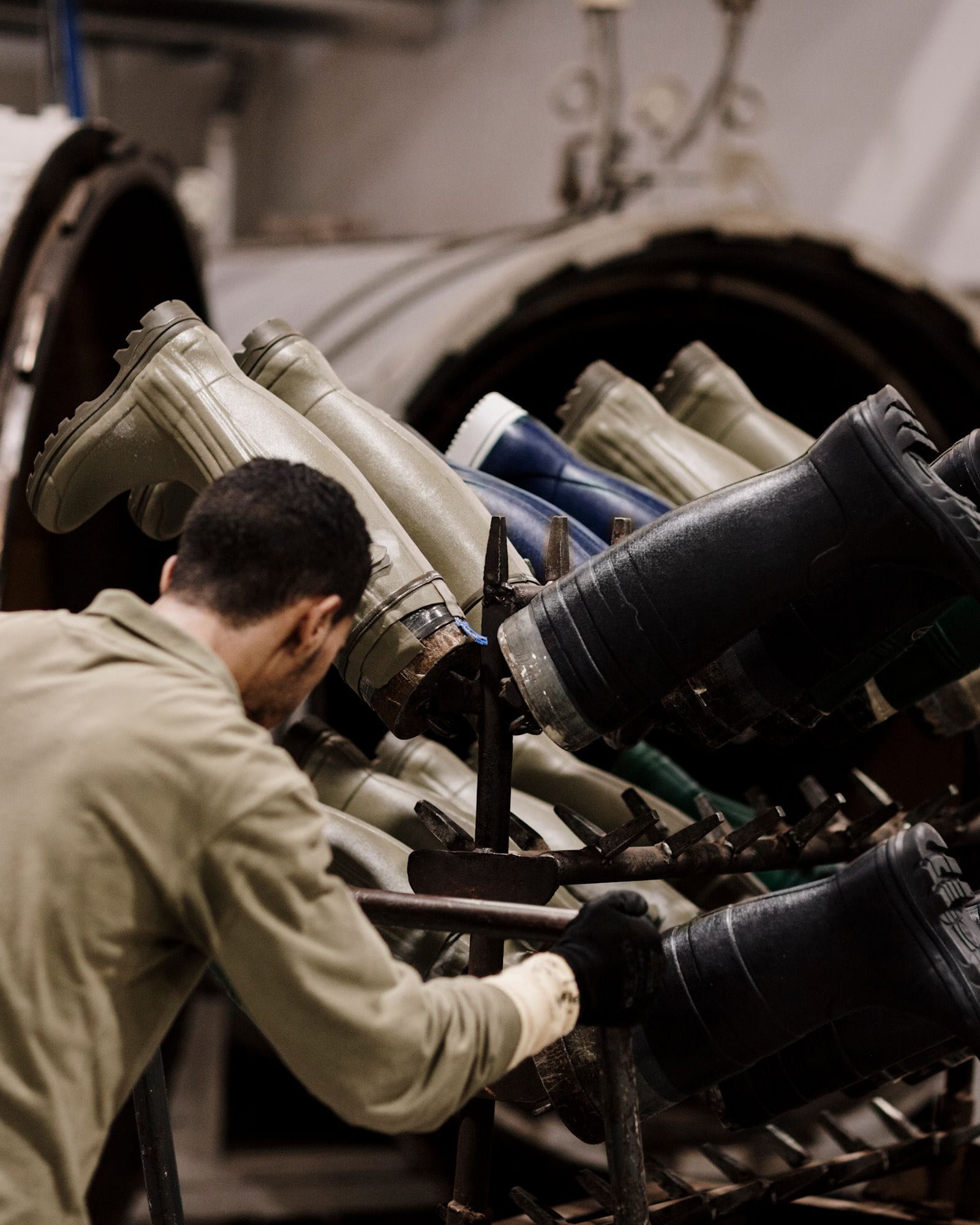 After vulcanisation, every Vierzonord boot is submerged in a water bath, air forced inside, its surface watched for any flaw.