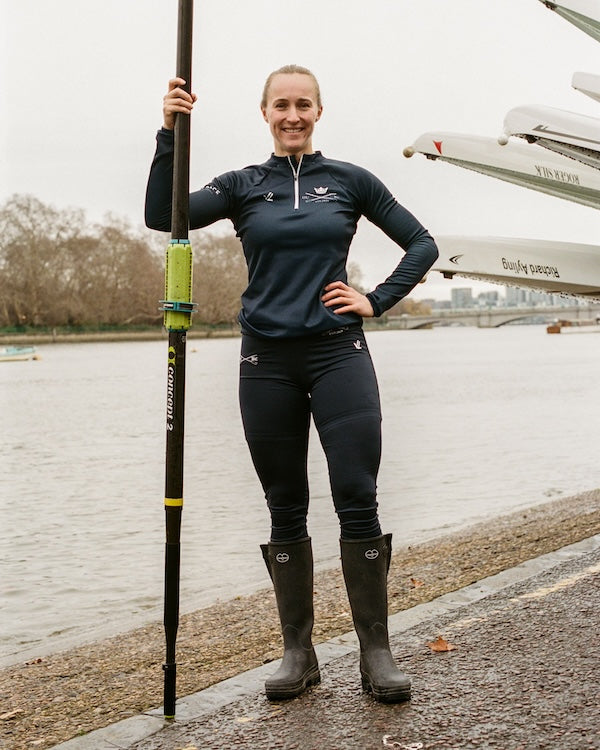 HL: To be completely honest, one of the really iconic things about The Boat Race is the wellies. When I first started watching it, it was brilliant to see the rowers walking out in their matching wellies, throwing them at the banks and wearing them at the podium. Since then, I always wanted a pair. To have some Le Chameau boots now is really exciting. The boots are completely essential for us because with the Thames Tideway the water comes up and down very quickly. We could launch the boat out in the morning, and when we come back in, the tide would be up and we need to wade back in carrying the boat. On land, without them, you're freezing, and having these boots makes a really big difference to your preparation, keeping your feet warm and dry. I love them!