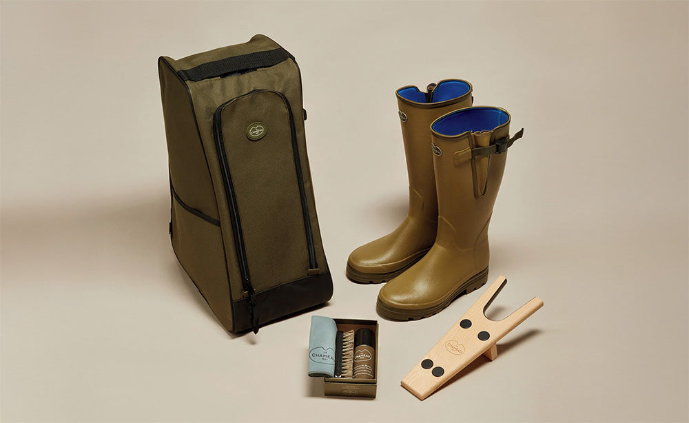 Available with all our tall wellington boots for men and women, each bundle features a Le Chameau boot bag for clean storage and tidy transport, a care kit to keep the rubber supple and looking its best, and a boot jack for effortless removal.