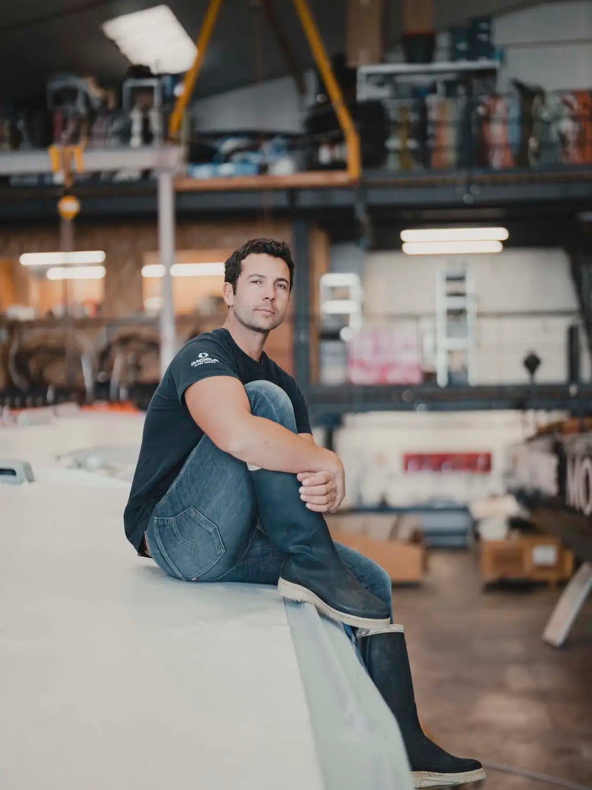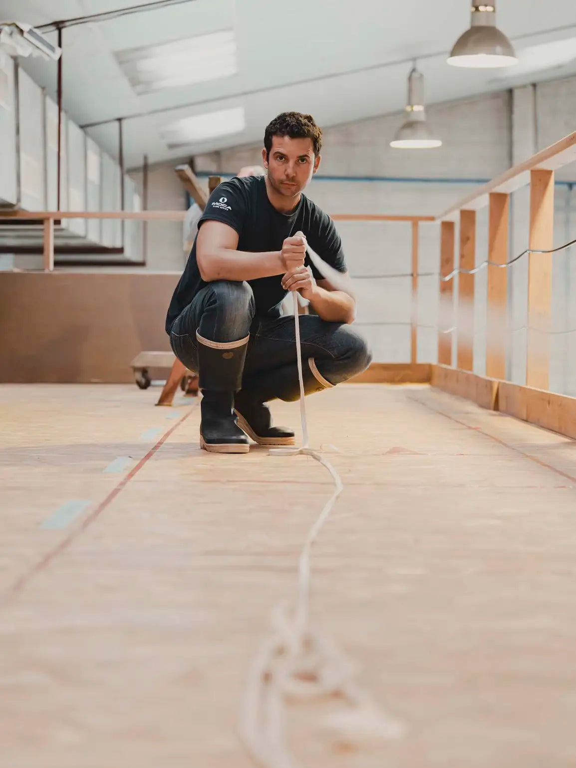 Guirec must become familiar with every square inch of his boat before the race. Here he’s pictured in his favourite Le Chameau Marinord Evo boots.