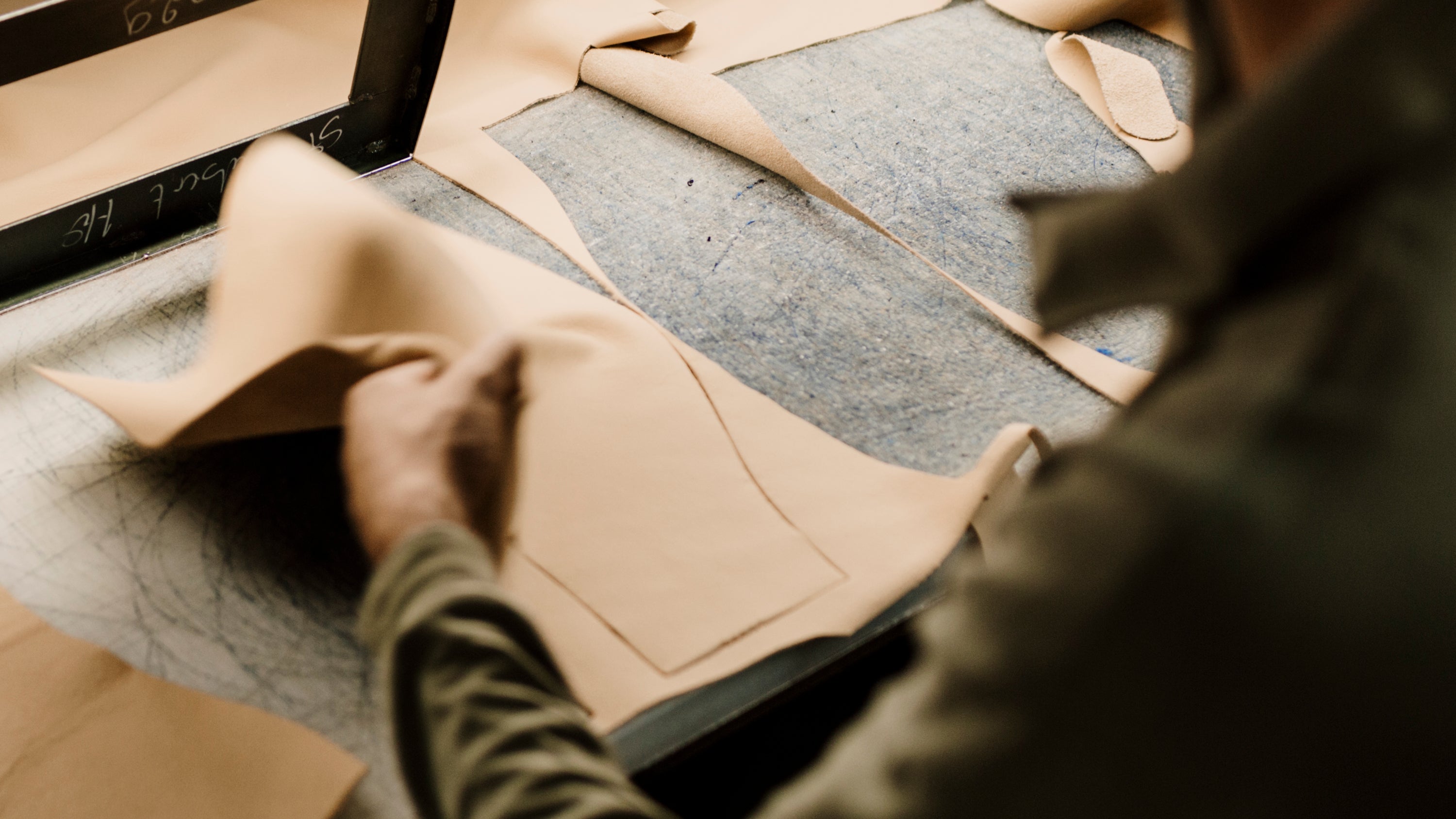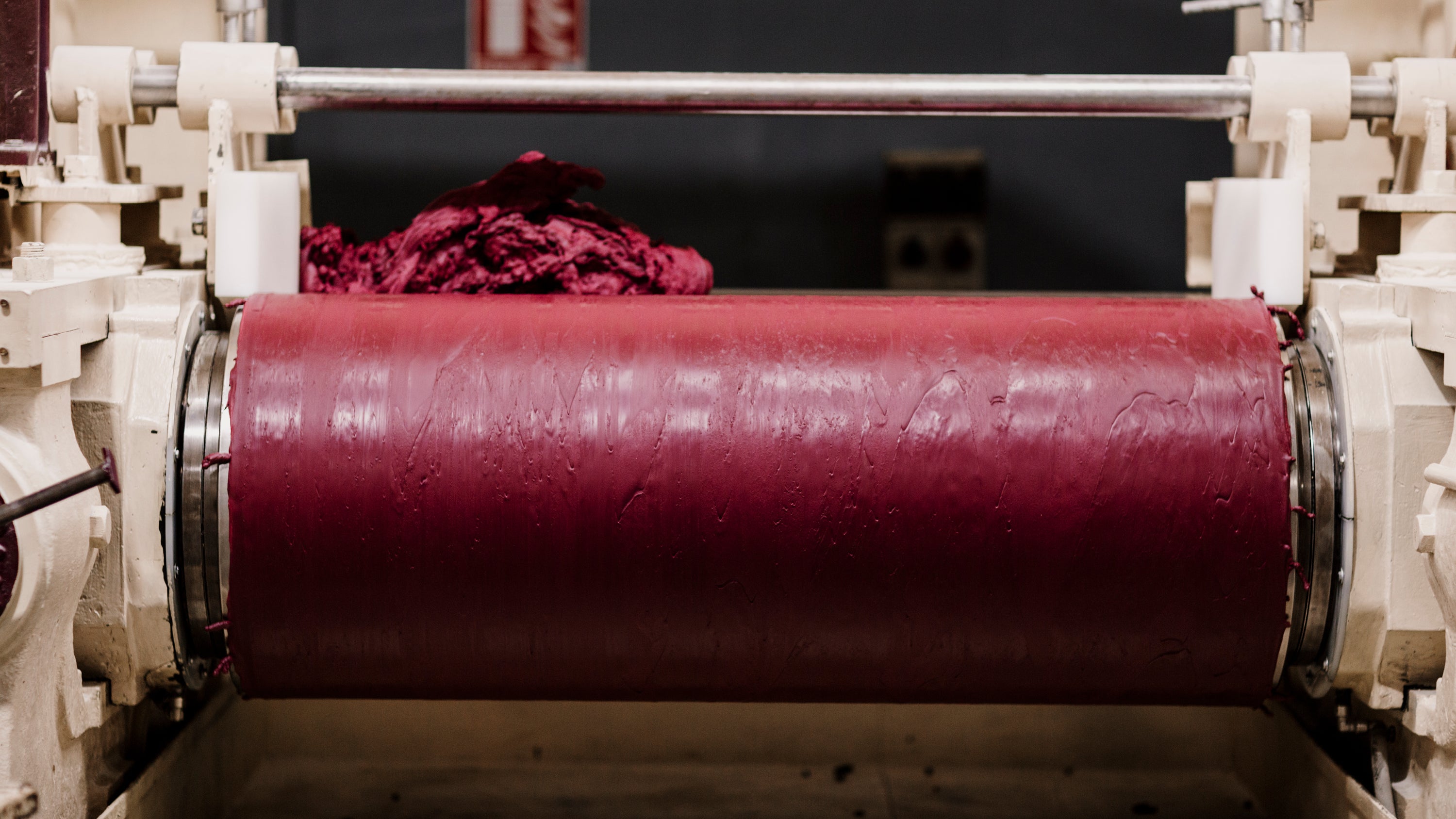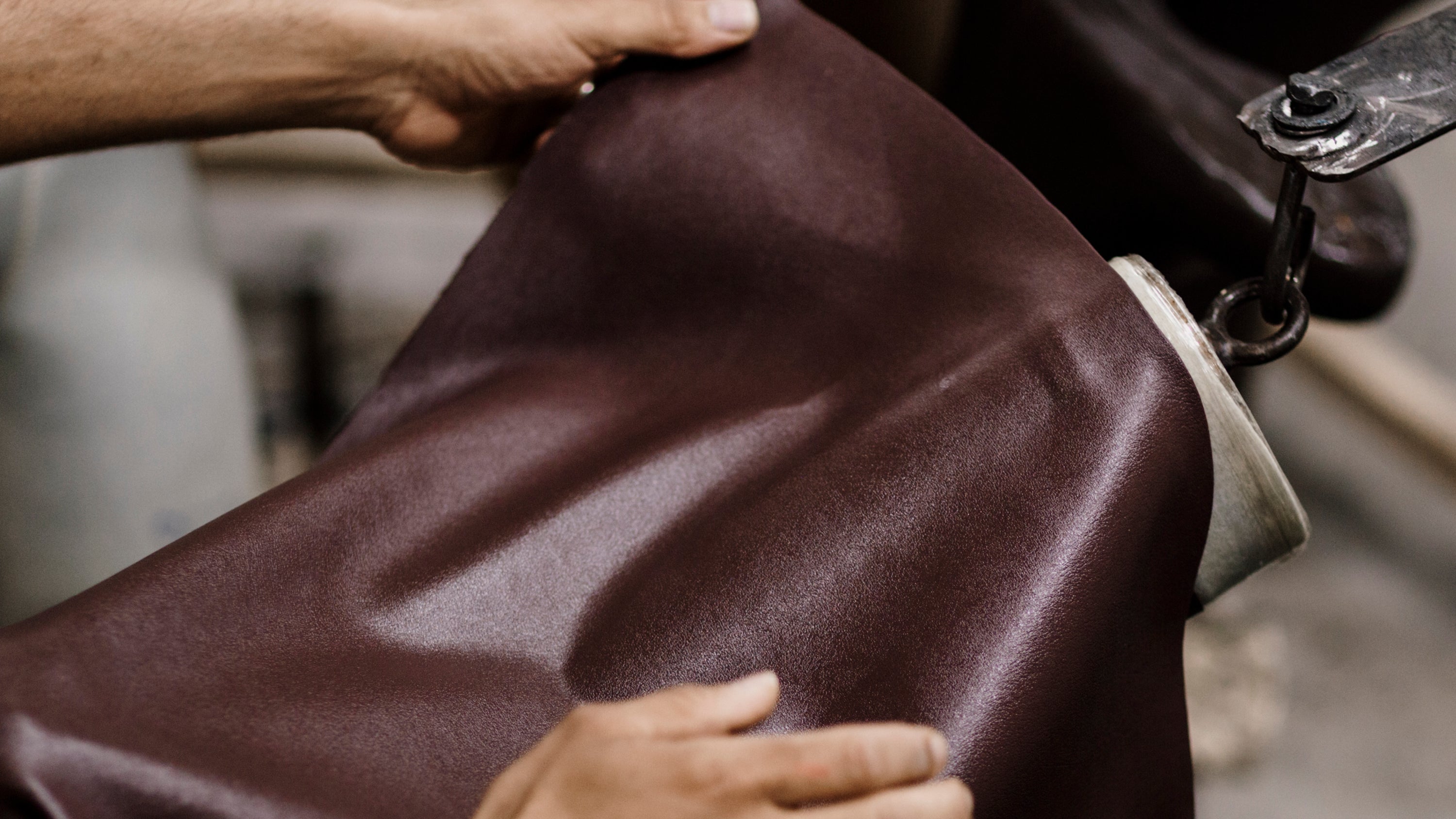 Une fois nos pains en caoutchouc prêts, notre recette spéciale est ensuite mélangée au caoutchouc brut et roulée autour de grands rouleaux métalliques. Comme une machine à pâtes géante, les rouleaux tournent, produisant d’abord une couche épaisse, qui est ensuite coupée et insérée dans le rouleau suivant, jusqu’à ce que l’épaisseur parfaite requise émerge du dernier rouleau, assez épaisse pour être résistante, mais assez mince pour que chaque Maître bottier puisse la manipuler. A l’aide de patrons soigneusement conçus, le caoutchouc est mis en forme et découpé à la main.