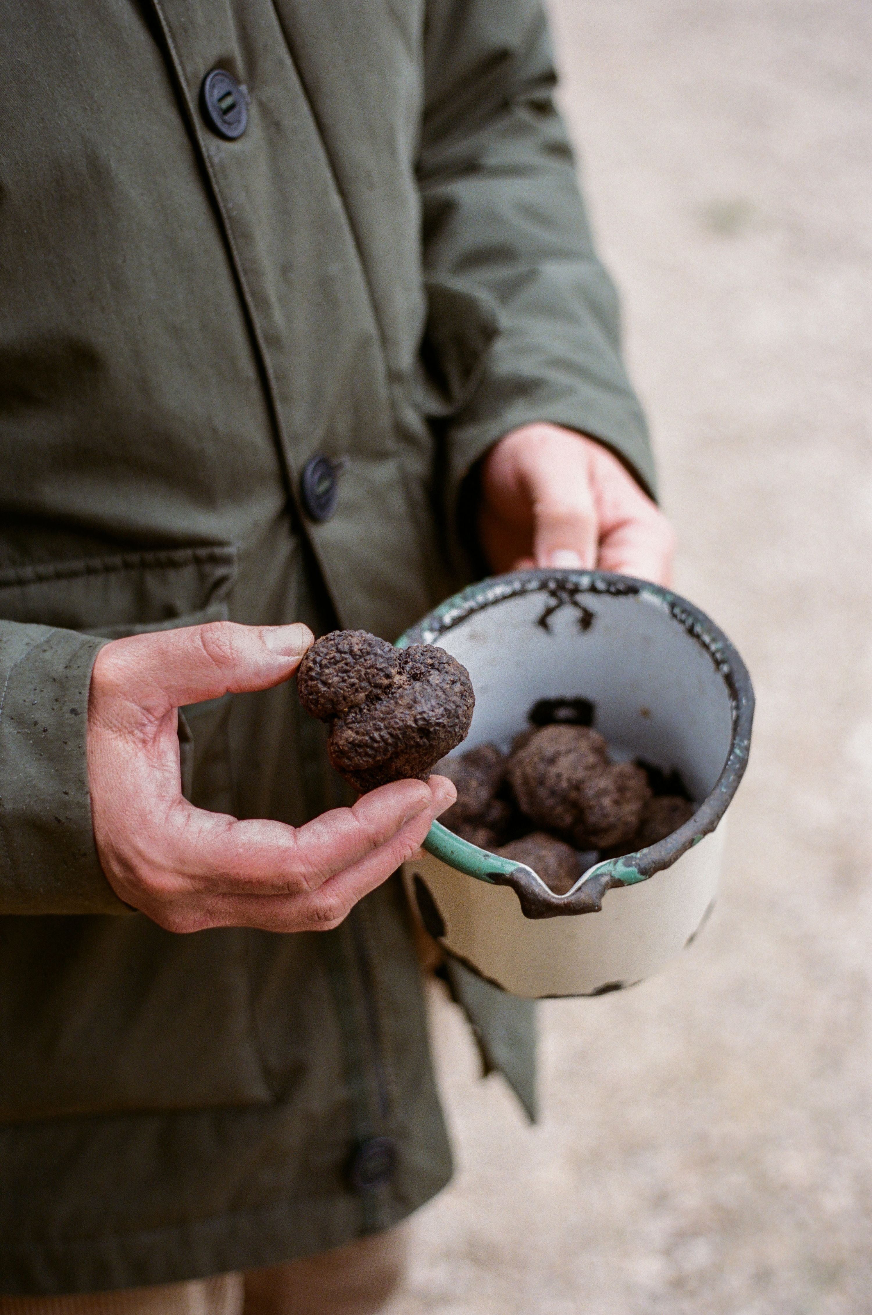 Wearing Le Chameau Explore and Saint Hubert Héritage, the hunters ventured deep into the French countryside and to a secret location to express their craft of truffle hunting. During the couple of days, the Le Chameau team foraged a number of truffles in the woodland, washed and cleaned them back at the truffle hunter's mountain lodge, and were also treated to a favourite recipe of theirs, Omelette aux Truffes.