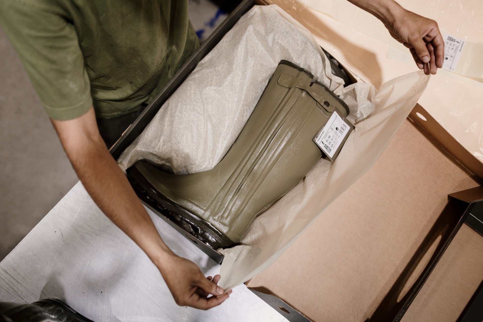 Once the final quality checks have taken place, all that’s left to do is give the assembled pairs a final polish, carefully wrap them in our branded tissue paper, and place them in our iconic boot boxes. They are then ready to leave the workshop and be thoroughly enjoyed by their new owners.